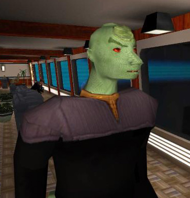 Rank: Lieutenant Commander Age: 28 years Gender: Male Race: 1/2 Gorn, 1/4 Klingon, 1/4 Andorian (Genetically Engineered) Position: Tactical Officer Origin: Nisus Colony Romantic Situation: Dating Trish Yanick. Voiced by: Anthony Butler |