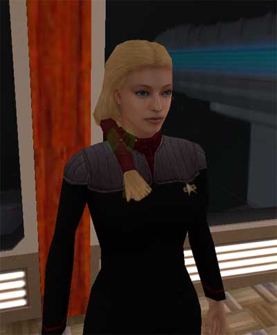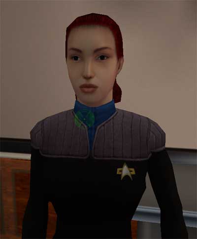 Smart, sexy, beautiful. Everything you’d expect in a nun. Well, OK, she’s not a nun, but when the time came for her to decide being joining a convent and joining Starfleet it was only her desire for adventure that put her into a Starfleet uniform instead of a habit. As a devoted Catholic, Dr. Wowryk loves God. As herself, she really hates sex. And men. And sex. And men! If you’re a man, Dr. Wowyk is best avoided. But don’t get any ideas ladies; she’s straight as a board. Tall, auburn haired and with curves in all the right places!