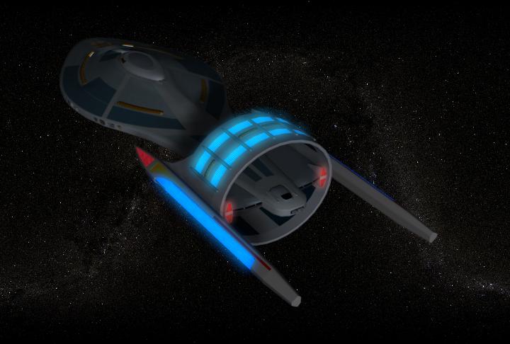 The first of three experimental Hummingbird-class ships to be certified for flight, the Roadrunner is a fairly standard ship for the most part. Warp and impulse drive for flying around, weapons and shields for defence and of course sensors for figuring out just what the heck that big space blob is. But such a small ship doesn’t have room for luxuries. Quarters are more like university dorms than apartments, there’s no room for a holodeck, meals are only available in the mess and odds are you’ll be sharing your bathroom with at least one neighbor. Shuttlebay? What shuttlebay? A single shuttle docked at the aft of the ship is the only support craft available, other than a few lifeboats. |